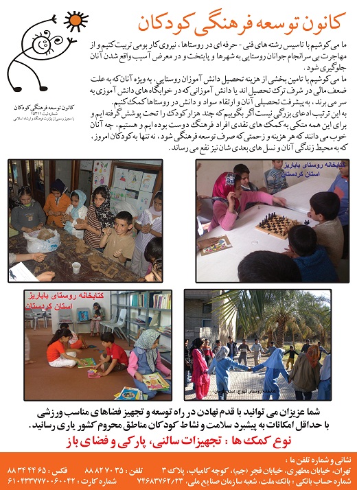 ویژه نامه ای منتشر کرده و در آن یک صفحه به معرفی کانون توسعه فرهنگی کودکان اختصاص داده است. از مسئولان این نشریه سپاسگزاریم.