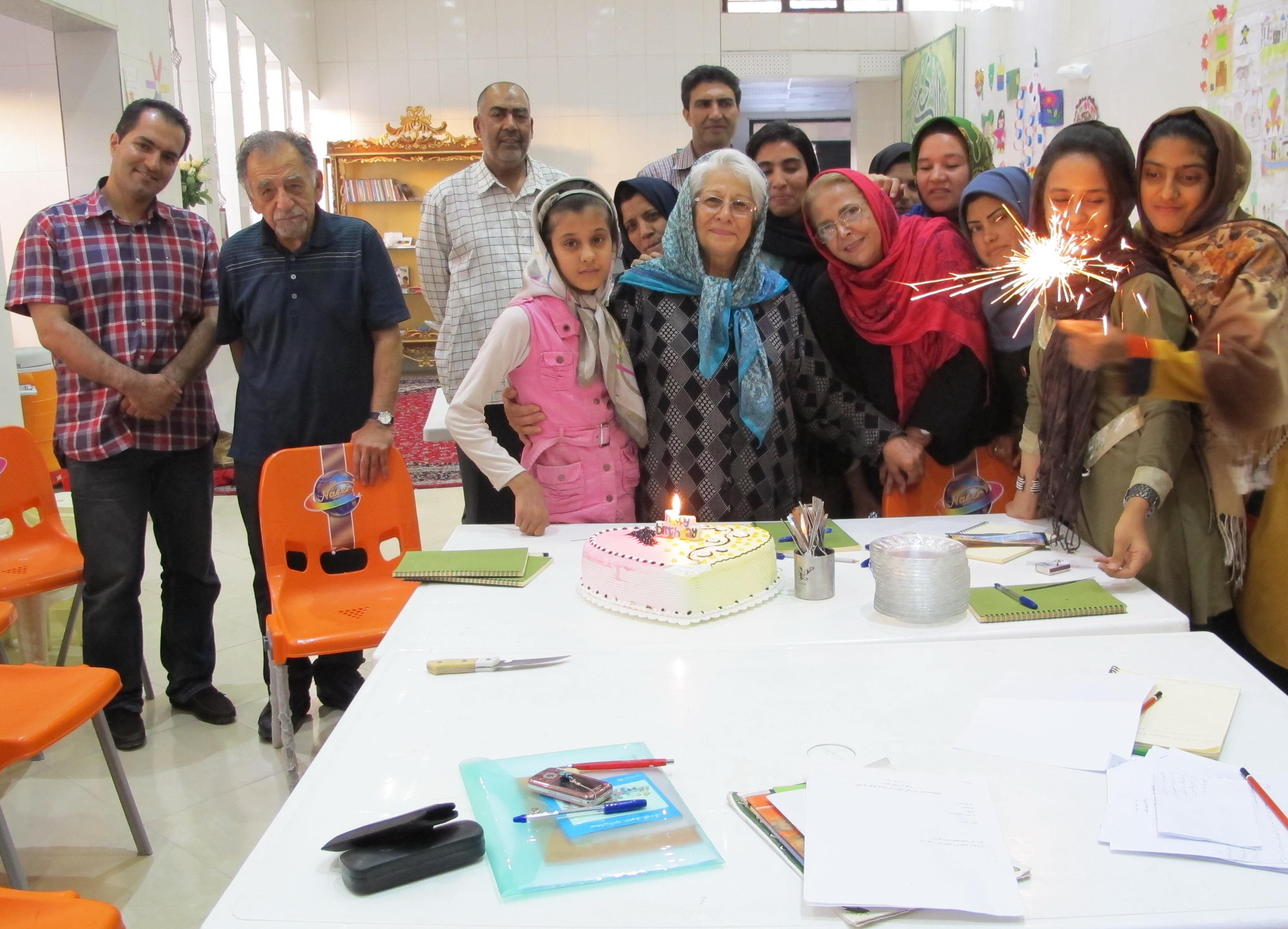 درپایان این جلسه، کتابداران و اعضای کانون جشن کوچک غیرمنتظره ای به مناسبت تولد خانم همایونی برگزارکردند. چون معمولاً دوره های آموزش کتابداران در هفتۀ دوم یا سوم شهریور برگزار می شود، این سومین باری بود که همراه با کتابداران تولد خانم همایونی را جشن می گرفتیم.